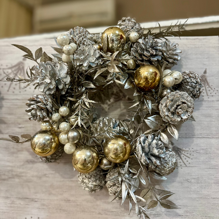 BIANCHI DINO Ghirlanda Centrotavola Sbiancata con Palline Dorate e Perle