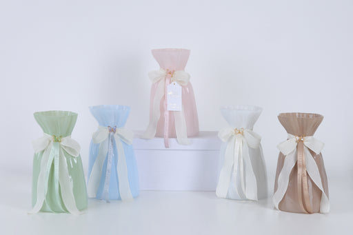 Visualizza tutti i dettagliElegante vaso in vetro colorato della collezione FIORI DI LENA, impreziosito da delicate nebbiolina e un raffinato fiocco decorativo. Disponibile i...