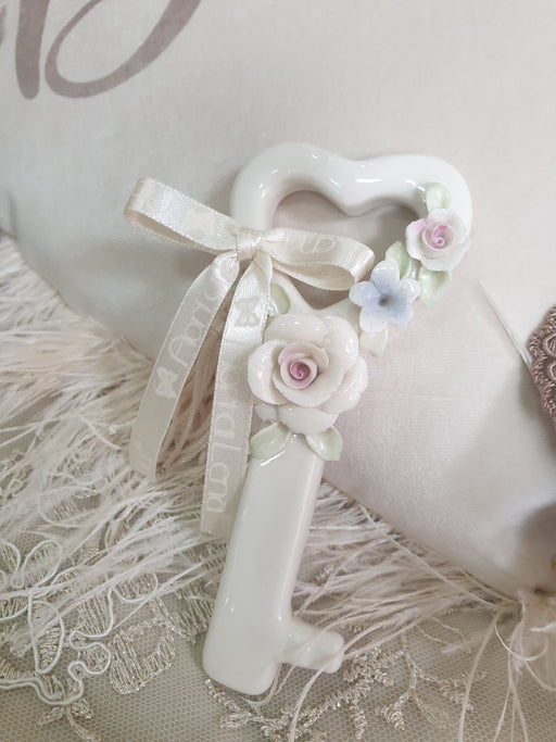 Visualizza tutti i dettagliUn simbolo di eleganza e tradizione artigianale italiana. La Chiave in Capodimonte con Roselline Fiori di Lena è un raffinato oggetto decorativo re...