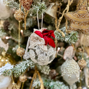 COCCOLE DI CASA Pallina con Fiore Rosso Perline e Pizzo