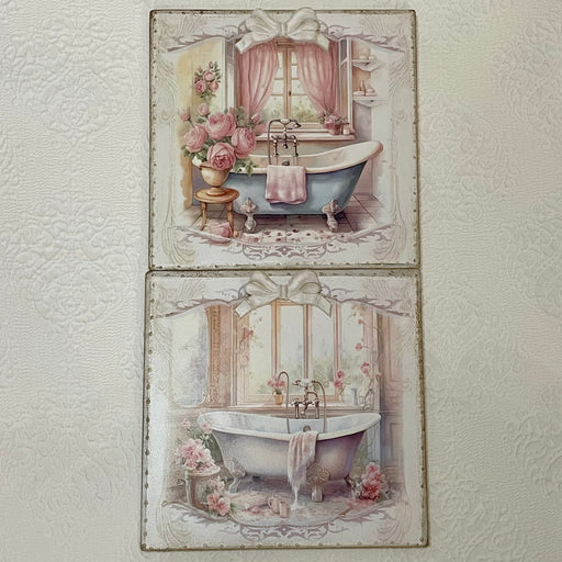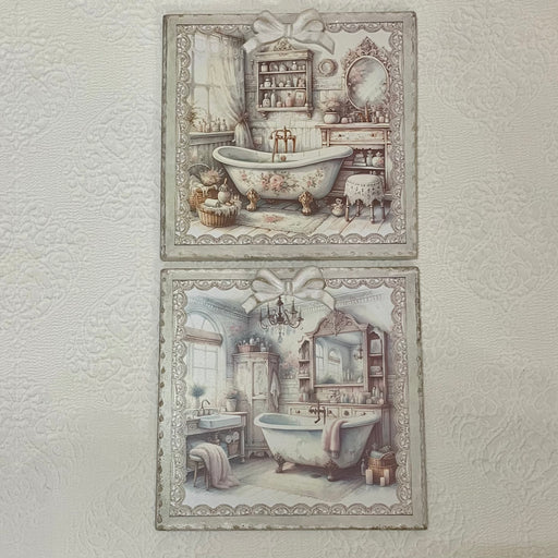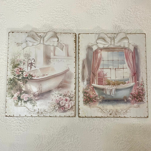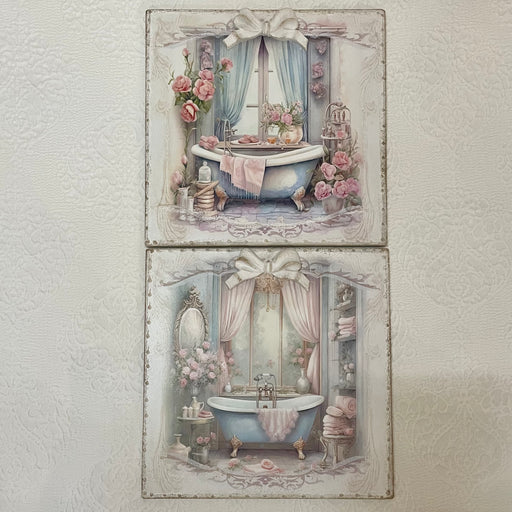 Cesaria ArteAggiungi un tocco di eleganza e delicatezza al tuo bagno con il set CESARIA ARTE, composto da due quadri in legno shabby chic decorati con un raffi...