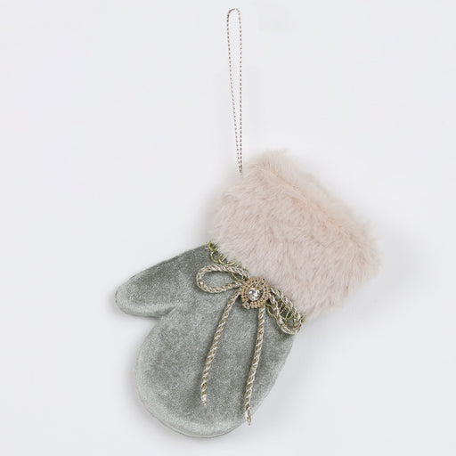 Visualizza tutti i dettagliFIORI DI LENA Decoro Guantino in Velluto Acquamarina con Pelliccia