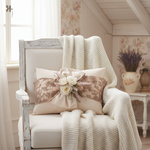 Fiori di LenaCuscino Decorativo Shabby Chic con Pizzo e Fiocco | Artigianale Made in Italy | Fiori di LenaUn tocco di romanticismo provenzale per la tua casa: i...