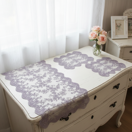 Fiori di LenaTrasforma ogni angolo della tua casa in un'oasi di eleganza con il Tris di Centrini in Pizzo Lilla di Fiori di Lena. Questo raffinato set da 3 pezz...