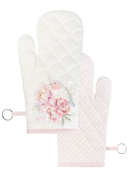 Nuvole di StoffaSet di eleganti presine in cotone della collezione NUVOLE DI STOFFA, decorate con delicati motivi floreali e graziosi uccellini o farfalle. Il desi...