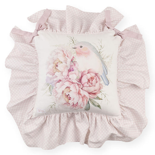 Visualizza tutti i dettagliNUVOLE DI STOFFA Cuscino con Farfalla/Uccellino e Peonie "FIORIRÀ"