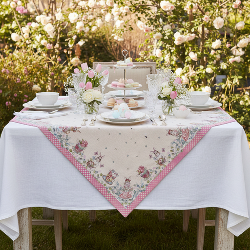 NUVOLE DI STOFFA Centrotavola Quadrato con Coniglietti e Tazze "JACQUARD"
