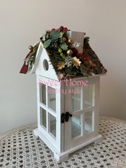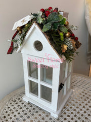 FIORI DI LENA Lanterna Casetta in Legno con Decoro Natalizio