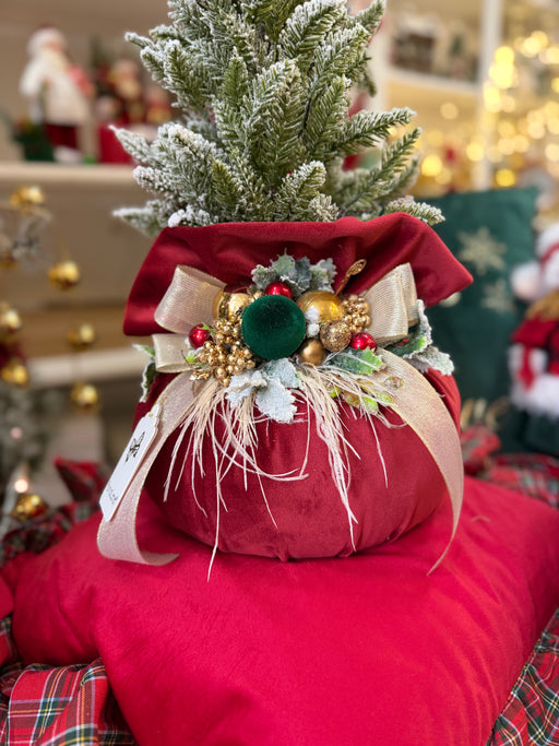 FIORI DI LENA Alberello Natalizio in Velluto Rosso Tiziano con Sferette Dorate 50 cm