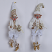 Decoro Coppia Elfo Maschio e Femmina FIORI DI LENA in oro e bianco, arricchito da sfere scintillanti perfetto per animare il tuo albero o gli angoli della casa, questo decoro unisce tradizione e raffinatezza, creando un’atmosfera calda e accogliente. Un dettaglio sofisticato che porta gioia e stile alle tue decorazioni natalizie.