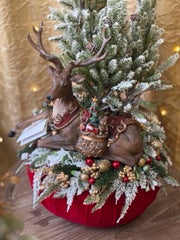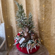FIORI DI LENA Paesaggio Natalizio e Renna su Pouf in Velluto Rosso