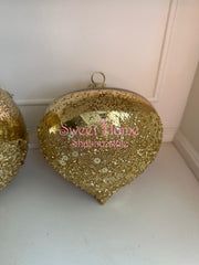 FIORI DI LENA Pallina Natalizia Grande in Vetro Dorato e Paillettes