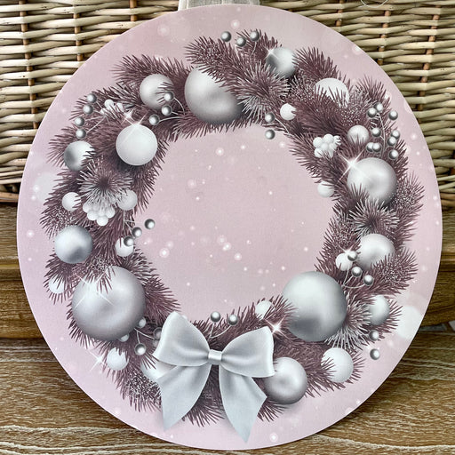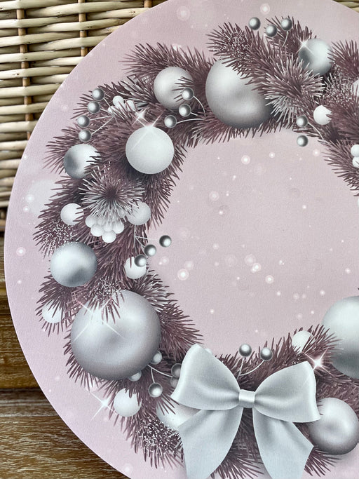 Visualizza tutti i dettagliTovaglietta Tonda Rosa con Ghirlanda Fiocco e Sfere in Vinile