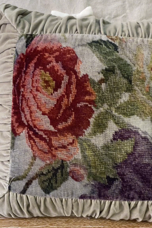 BLANC MARICLÒ Cuscino Verde Salvia in Velluto con Giglio Fiorentino Ricamato