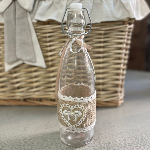 Bottiglia in Vetro con Decoro in Juta e Merletto