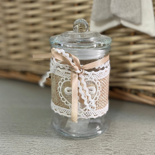 Barattolino Ermetico in Vetro con Decoro in Tessuto e Fiocchetto