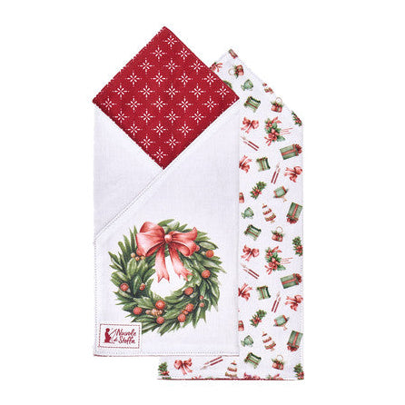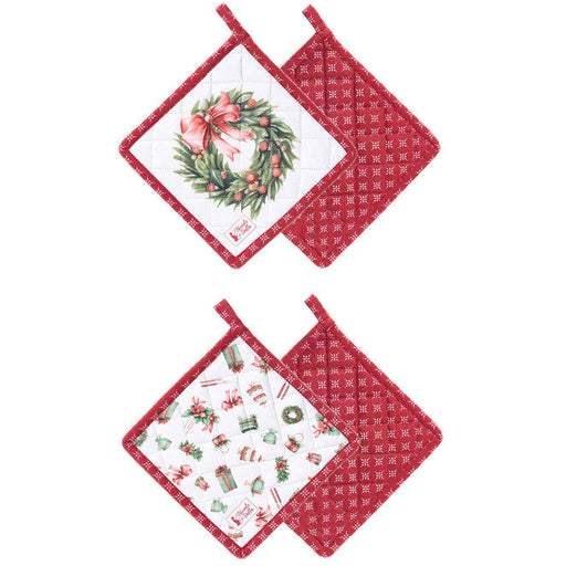 Nuvole di StoffaIl Guantone Natalizio in cotone con ghirlanda ed ornamenti natalizi di NUVOLE DI STOFFA della collezione " STORIA DI NATALE " Offre una protezione ...