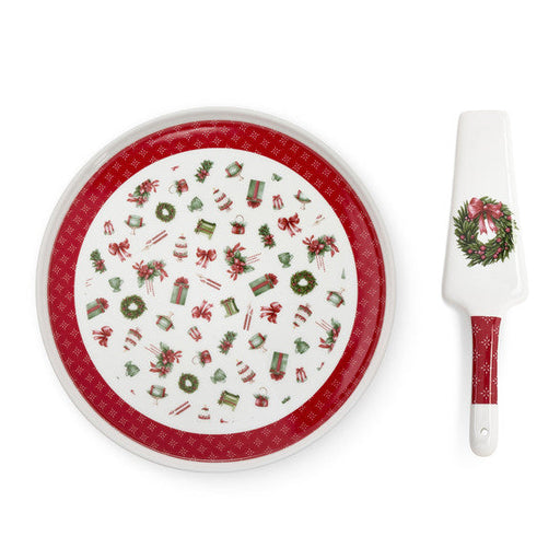 Nuvole di StoffaScopri il fascino del piatto con palatorta in porcellana di NUVOLE DI STOFFA della collezione "STORIA DI NATALE", completo di elegante scatola coor...