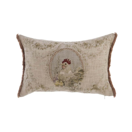 Blanc MariclòIl Cuscino Rettangolare Ricamato con Stampa Gallina "Coco" di Blanc Mariclò è un prezioso complemento tessile che unisce artigianato raffinato e ch...
