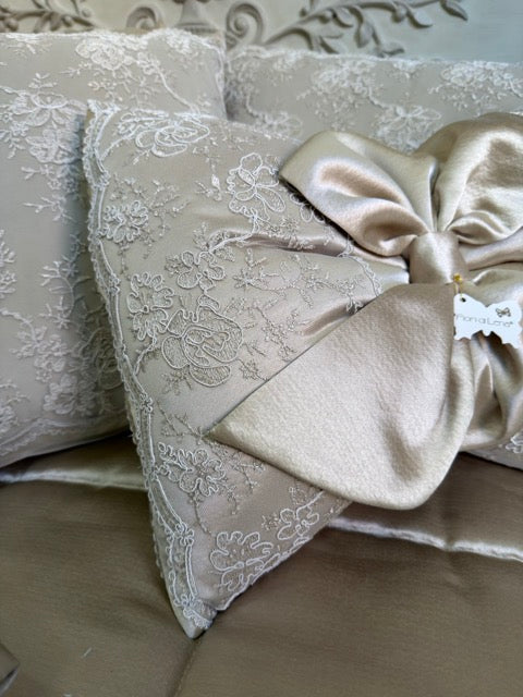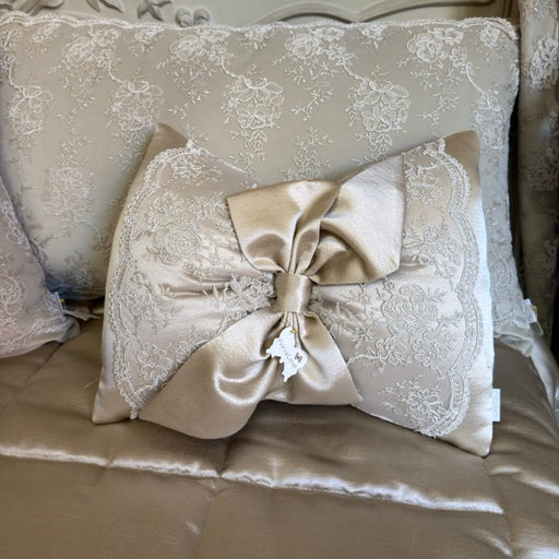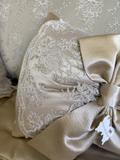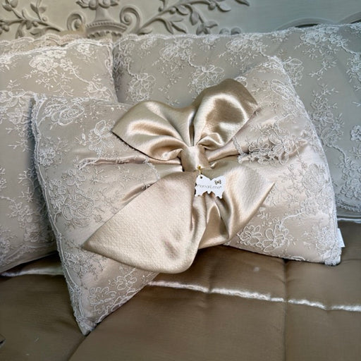 Visualizza tutti i dettagliFIORI DI LENA Cuscino Fiocco in Seta con Pizzo Nocciola