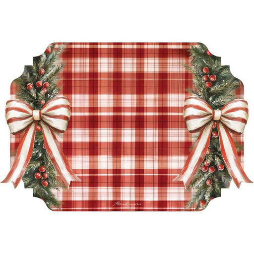 Blanc MariclòEsalta il tuo natale con la tovaglietta rossa in vinile di BLANC MARICLÒ della collezione "INTRECCI DI SOGNO", decorata con eleganti fiocchi e pall...