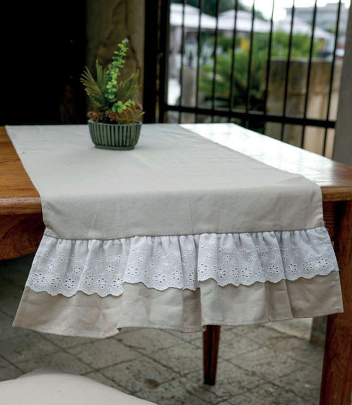 ClodetteRunner elegante in cotone e pizzo sangallo collezione Lulù Clodette con doppia rouche. Perfetto per tavolo shabby chic, stile romantico country. C...