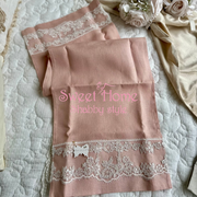 FIORI DI LENA Runner in Lino Rosa Pesca con Pizzo e Paillettes