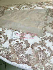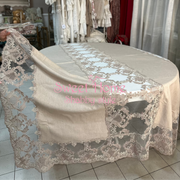 FIORI DI LENA Tovaglia in Lino e Doppio Pizzo Cognac