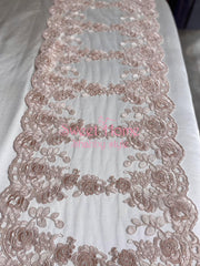 FIORI DI LENA Runner Ovale In Pizzo Rose Pesca 130 cm