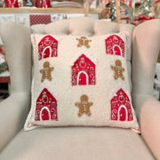 BLANC MARICLÒ Cuscino con Casetta e Omino Pan di Zenzero Ricamati e Applicazione di Corallini