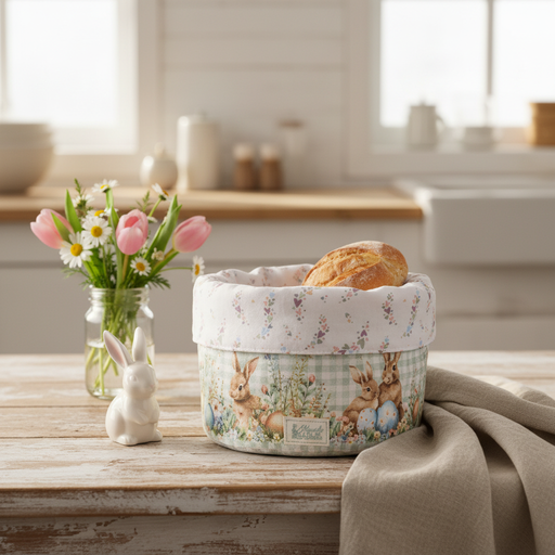NUVOLE DI STOFFA Cestino Porta Pane con Coniglietti e Uova "PEPEN"