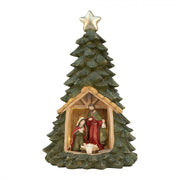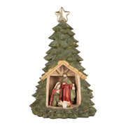 CLAYRE & EEF Albero di Natale con Sacra Famiglia e Led in Resina Verde