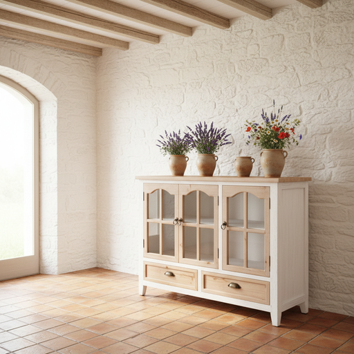 Coccole di casaCredenza Buffet Shabby Chic Crema con Top in Legno Naturale – COCCOLE DI CASA Stai cercando una credenza buffet shabby chic che unisca eleganza pro...