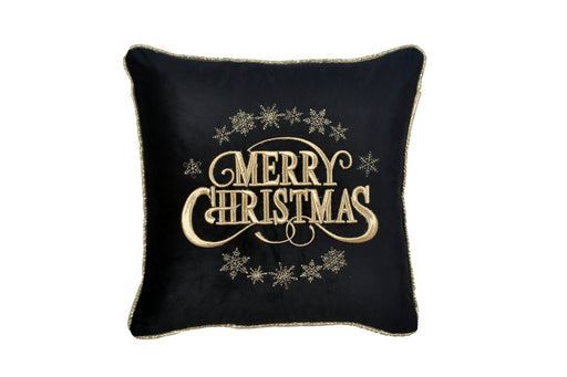 View full detailsCLODETTE Cuscino Natalizio in Velluto Nero con Ricamo "MERRY CHIRSTMAS" Dorato