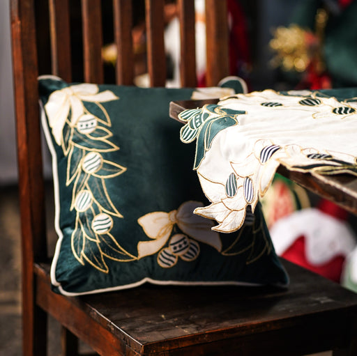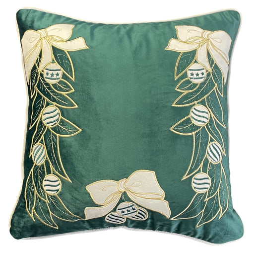 CLODETTE Cuscino Natalizio in Velluto con Ricami di Fiocchi e Foglie " JOLIE " Verde