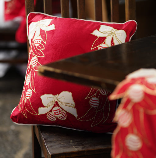 CLODETTE Cuscino Natalizio in Velluto con Ricami di Fiocchi e Foglie " JOLIE " Rosso