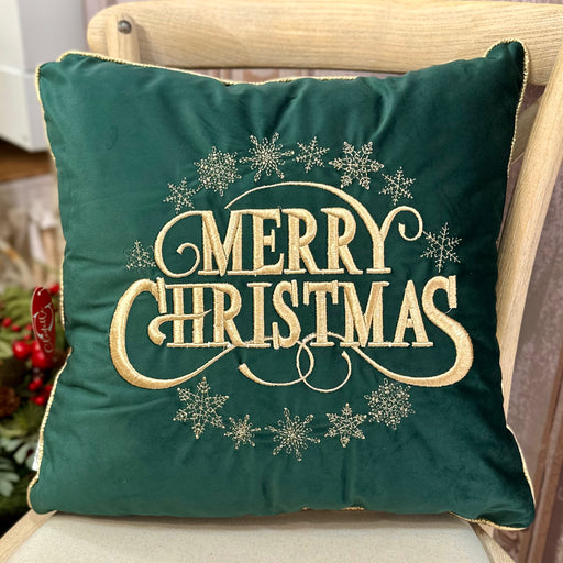 CLODETTE Cuscino Natalizio in Velluto con Scritta Ricamata " MERRY CHIRSTMAS " Verde