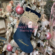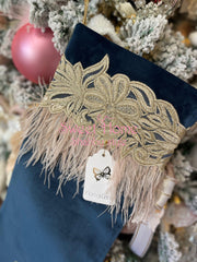 FIORI DI LENA Calza Natalizia In Velluto Blu Con Piume amore