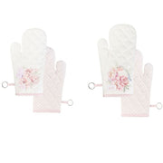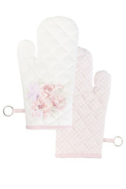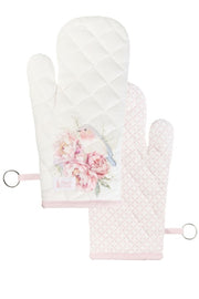 Elegante copriforno in cotone della collezione NUVOLE DI STOFFA, decorato con delicati motivi floreali e un grazioso uccellino. Il design "FIORIRÀ" presenta tonalità rosa cipria e bianco panna, con fiocchi in raso per un tocco shabby chic raffinato. Un accessorio che unisce funzionalità ed estetica, ideale per chi ama arredare la cucina con gusto shabby chic e romantico.