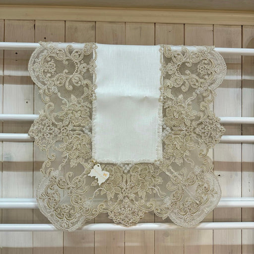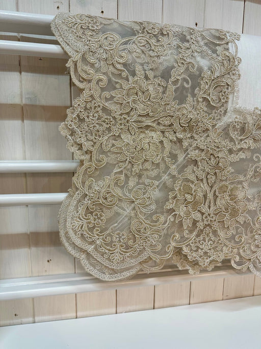 View full detailsFIORI DI LENA Tenda in Velluto con Pizzo Nocciola