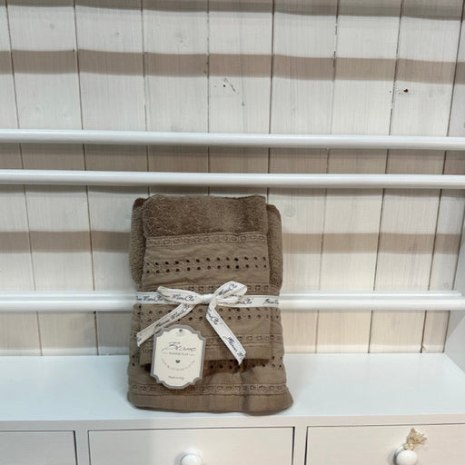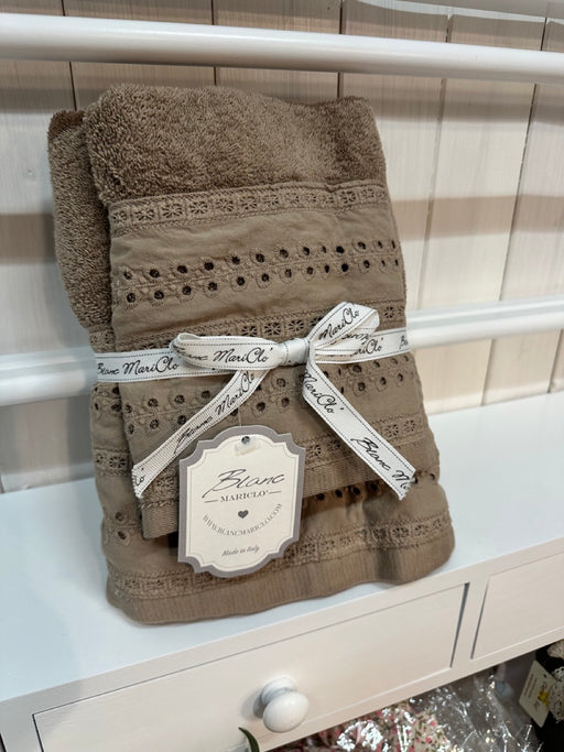 View full detailsFIORI DI LENA Trapunta In Seta Nocciola E Doppia Balza In Pizzo