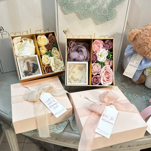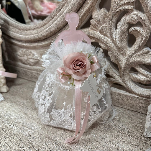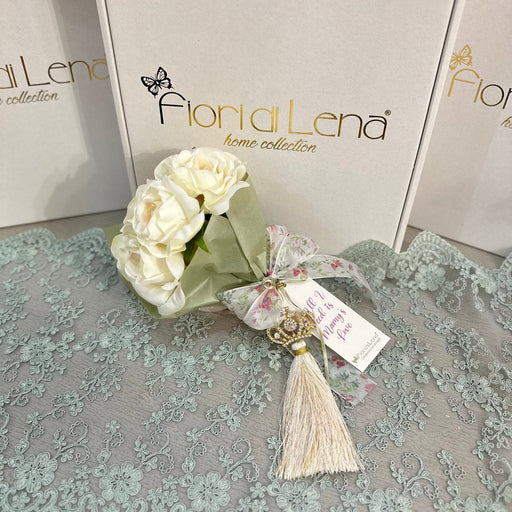View full detailsFIORI DI LENA Doppio Fiocco Nocciola in Velluto con Rosa Pizzo e Campane