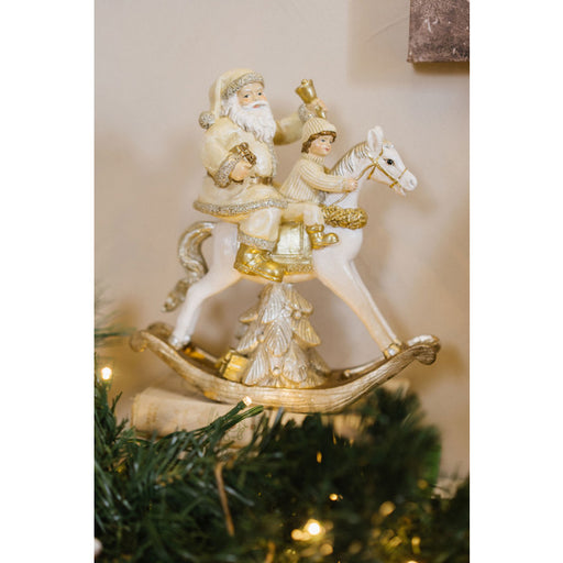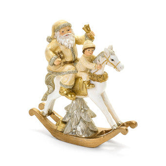 View full detailsNUVOLE DI STOFFA Babbo Natale su Cavallo a Dondolo in Resina Oro