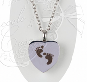 Meravigliosa collana nascita COCCOLE DI CASA con cuore e piedini. Realizzata in acciaio inossidabile, priva di nichel si presenta con un elegante sacchetto. Un modo unico e speciale per celebrare i nuovi arrivati nella famiglia.