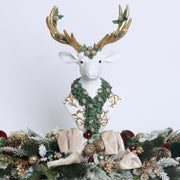 FIORI DI LENA Centrotavola Natalizio Renna Bianca Mezzobusto in Resina con Rami e Sfere