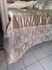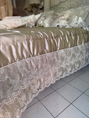 FIORI DI LENA Trapunta In Seta Nocciola E Doppia Balza In Pizzo