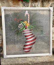 NUVOLE DI STOFFA Quadro Natalizio In Tela Con Calza Dipinta E Cornice In Legno