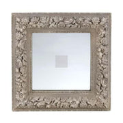 Specchio quadrato con cornice in resina decorata in rilievo. Un pezzo dall'aspetto vintage.