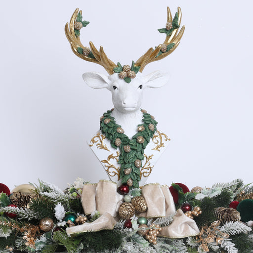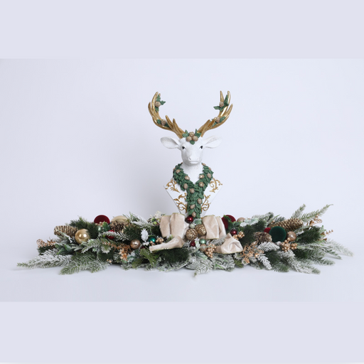 View full detailsFIORI DI LENA Centrotavola Natalizio Renna Bianca Mezzobusto in Resina con Rami e Sfere