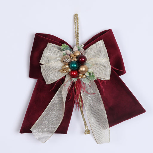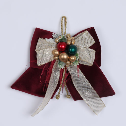View full detailsFIORI DI LENA Fiocco Natalizio Amaranto in Velluto con Nastro e Sferette 20cm